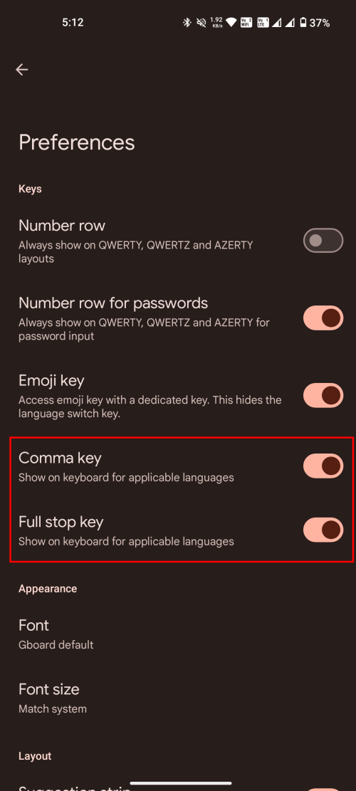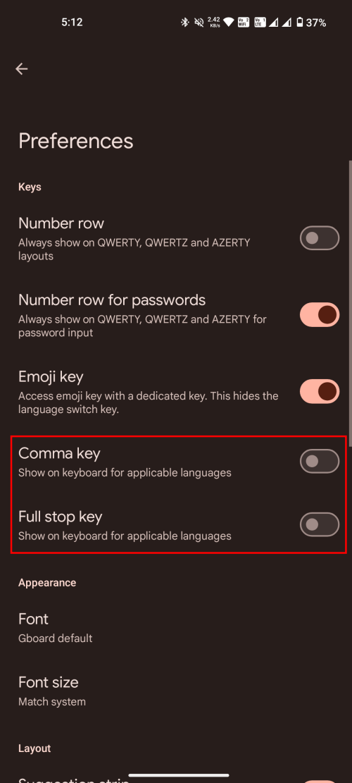 Google is testing a new customization feature in Gboard that allows users to hide the dedicated “.” (full stop) and “,” (comma) keys from the bottom row of the keyboard. The option appears under the Preferences menu as Comma key and Full stop key.