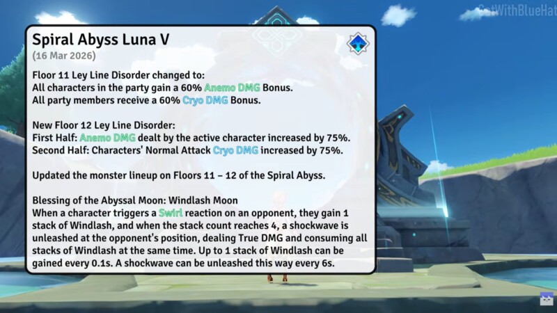 - Spiral Abyss overhaul: Floor 11–12 buffs and the new Windlash Moon blessing.