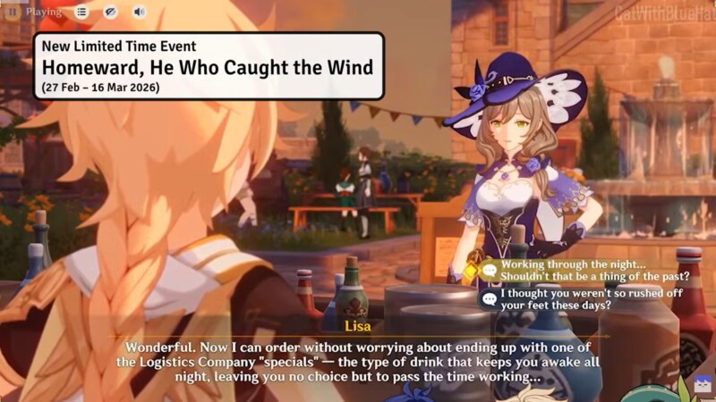 | Homeward, He Who Caught the Wind | Festival | Exploration & story | Primogems, cosmetics |