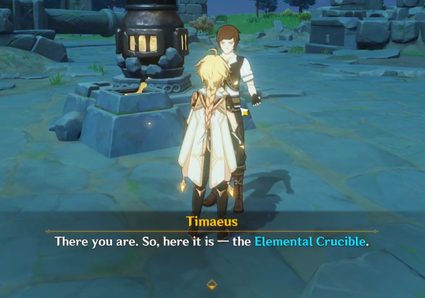 Once you are in the event window, you can scroll down to find and join the ‘Elemental Crucible’ event. You will then be taken to talk to Timaeus who should then introduce you to the Elemental Crucible.