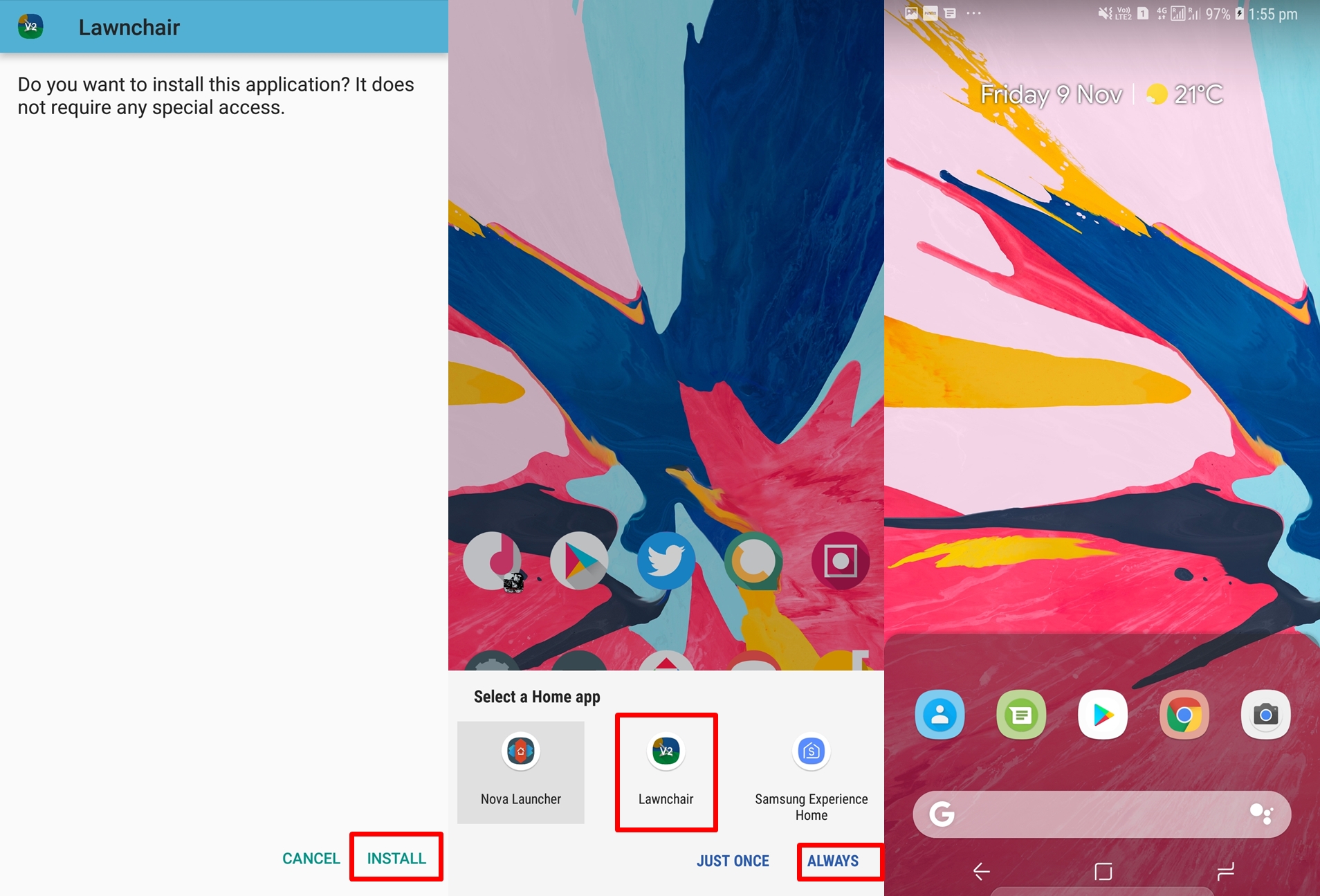 - Simply select Lawnchair and then tap on Always to set the Lawnchair as your default launcher.
