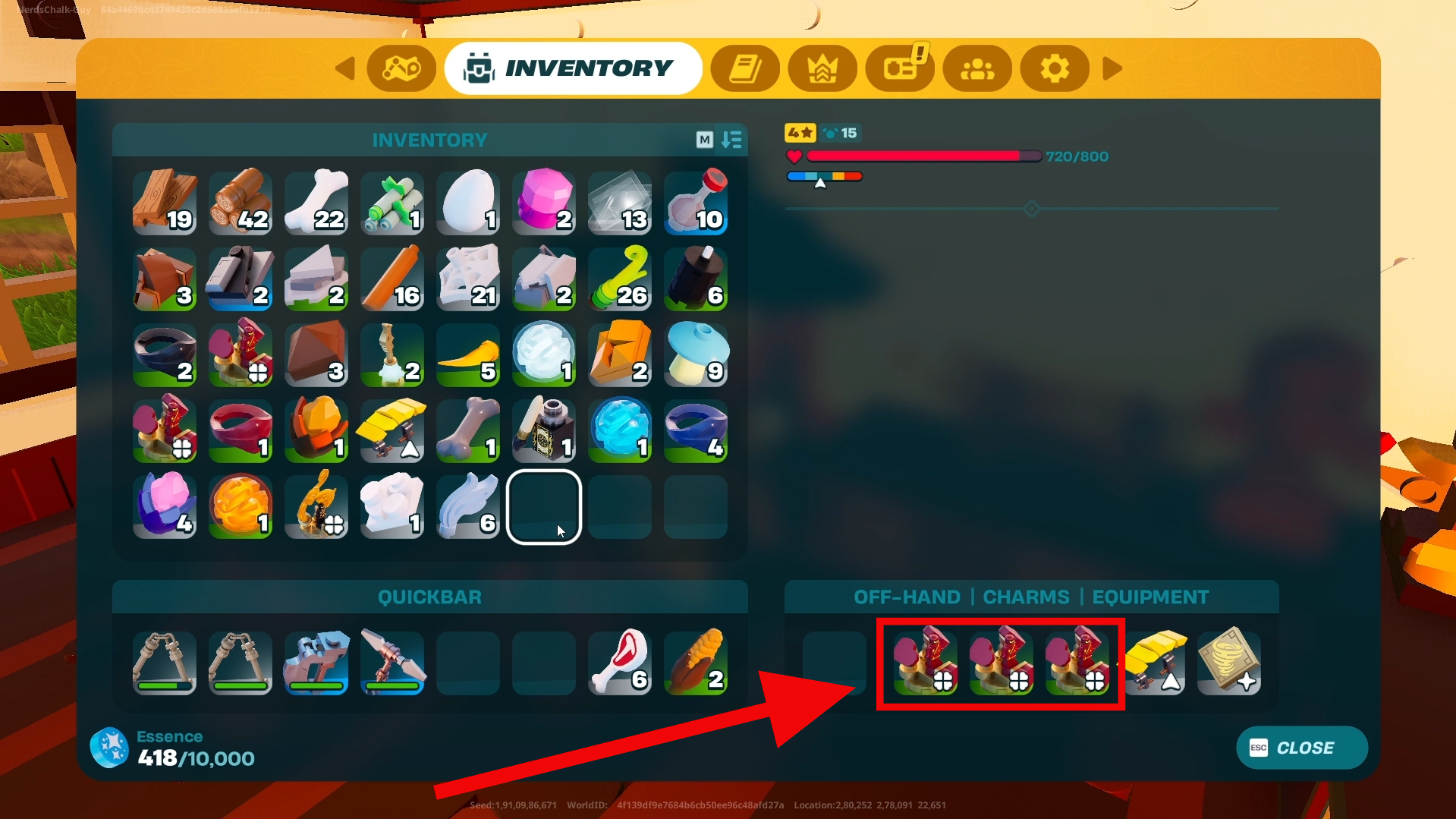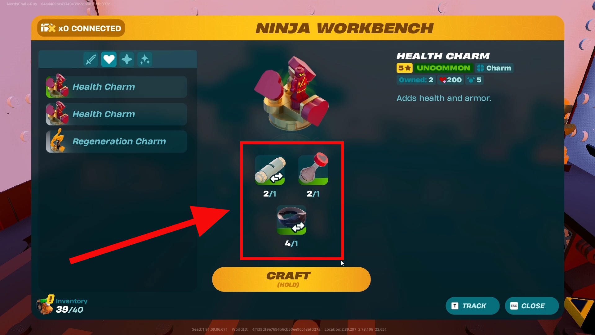After getting all the required resources, head to the Ninja Workbench and craft three 5-star Health Charms.