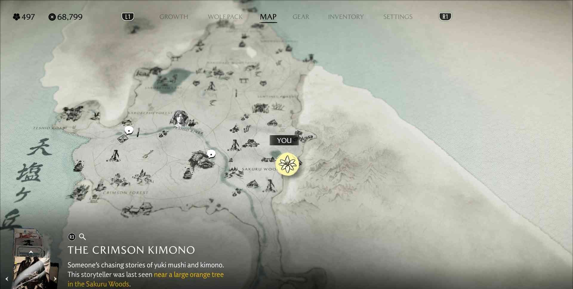 | The Crimson Kimono | Teshio Ridge, Sakura Woods | Storyteller Ugetsu at Mother Daughter Tree |