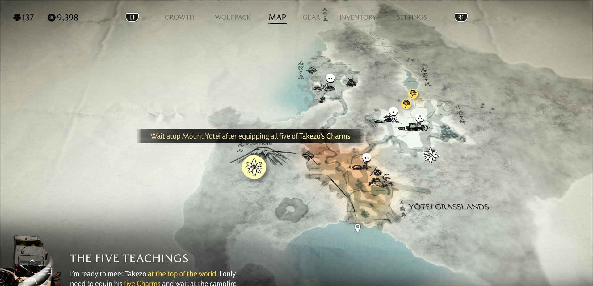 | The Five Teachings | Mount Yotei (west path, summit) | Unlocks after Takezo the Unrivalled |