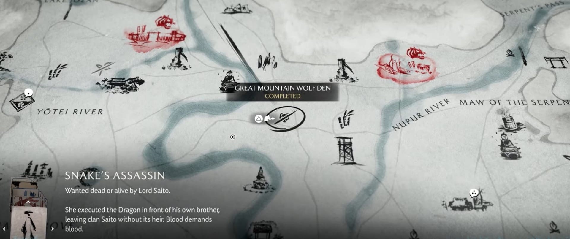 | Song of the Wolf | Various Wolf Dens in Yotei Grasslands & Ishikari Plain | None (Unlocked after Dens) | Complete 4 Wolf Dens | Points to undiscovered Wolf Dens; summon wolf ally. |