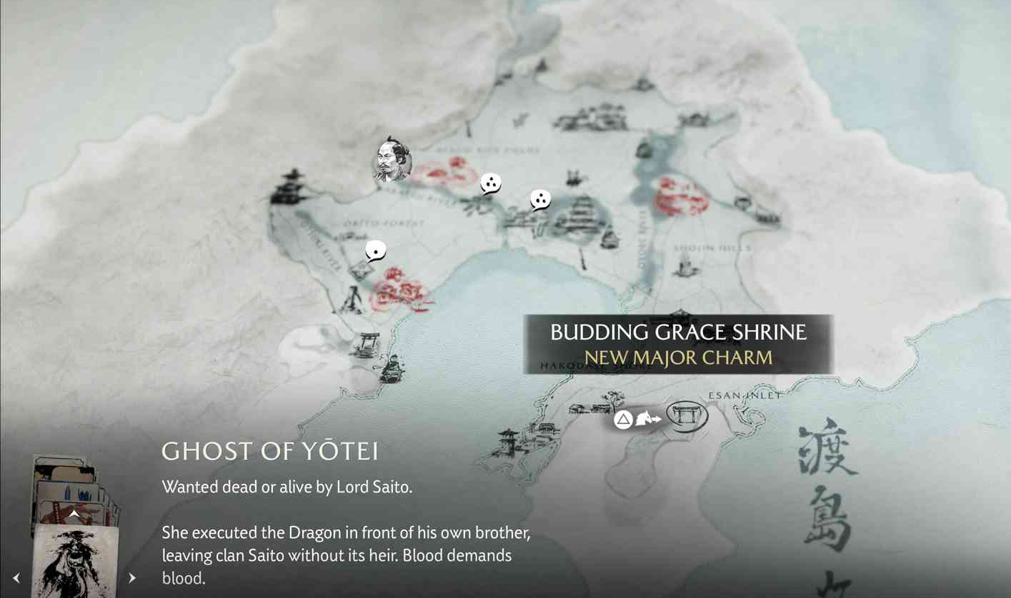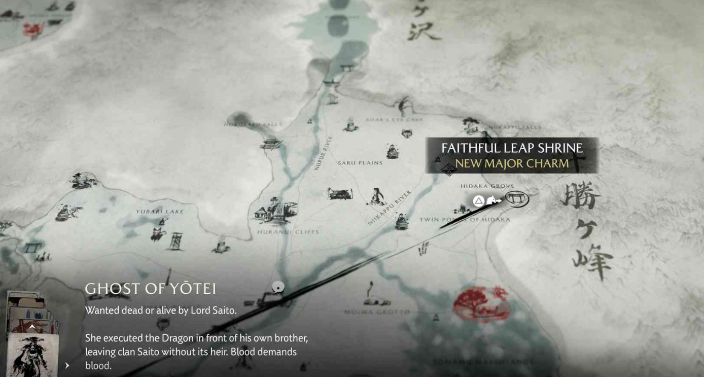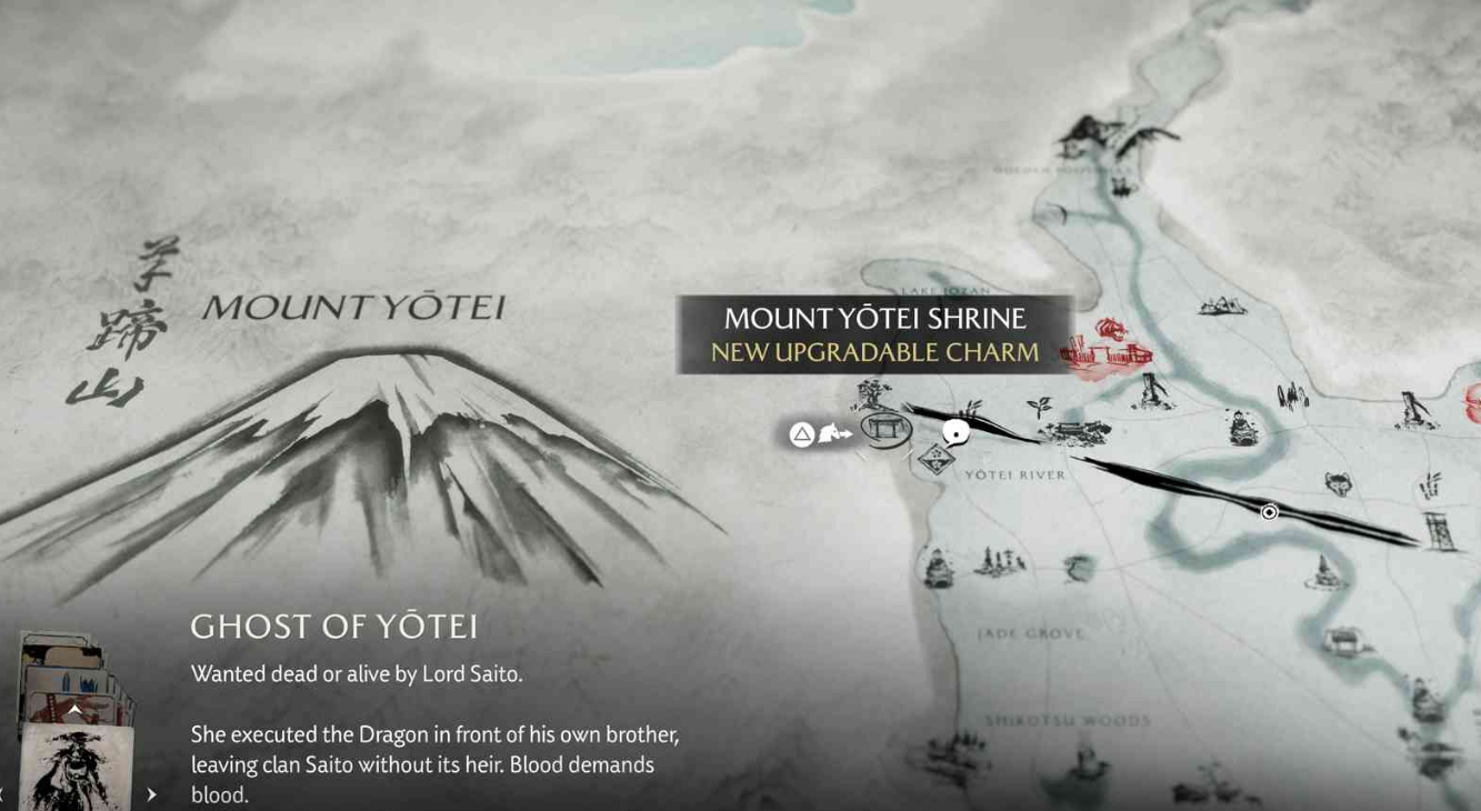 | Mount Yotei Shrine | Yotei Grasslands | Complex platforming, requires grappling | Mother’s + Father’s Charms |