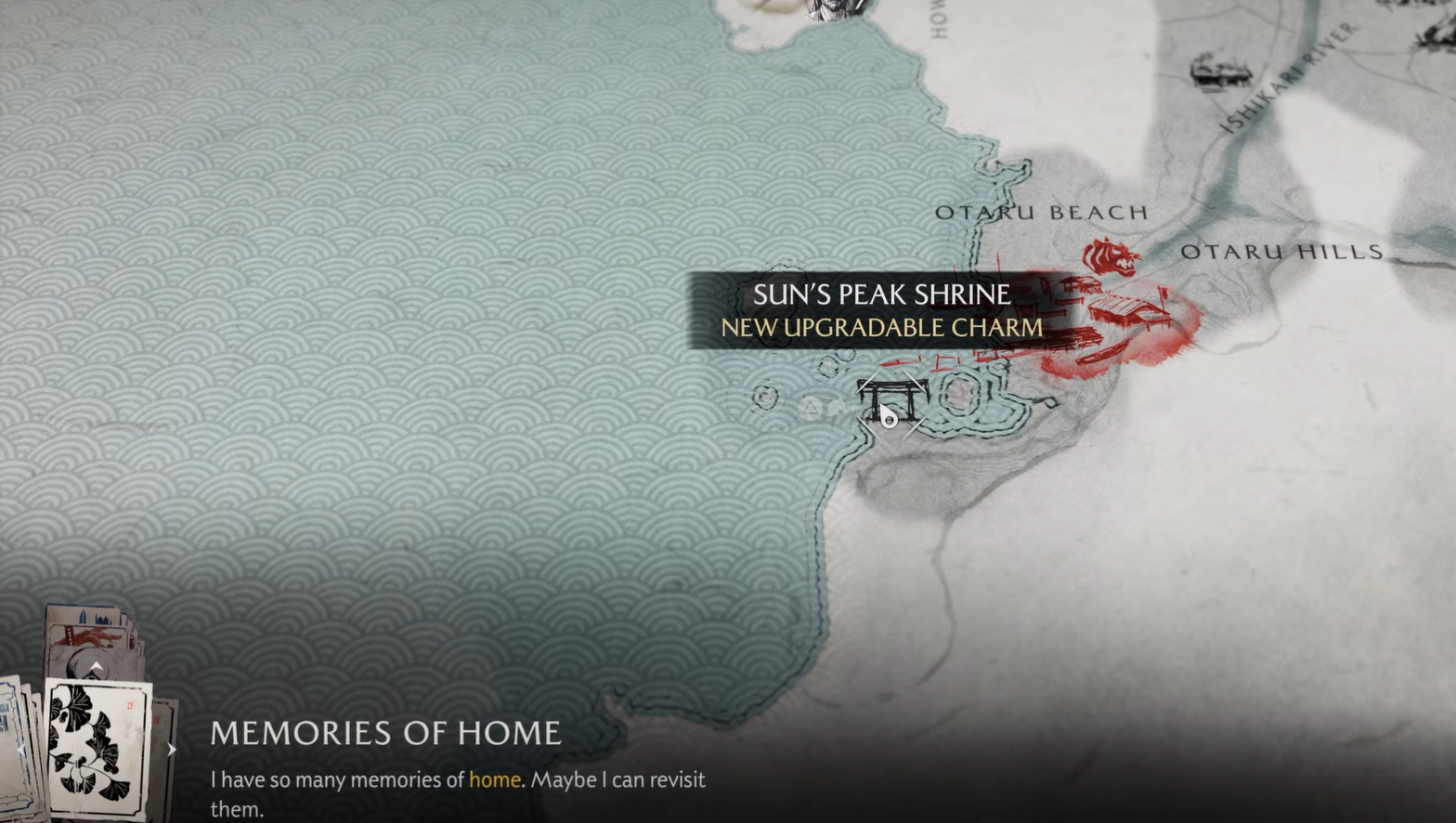 | Sun’s Peak Shrine | Ishikari Plain | Follow path SW coast near Nishin Fishery | Charm of Izanagi |