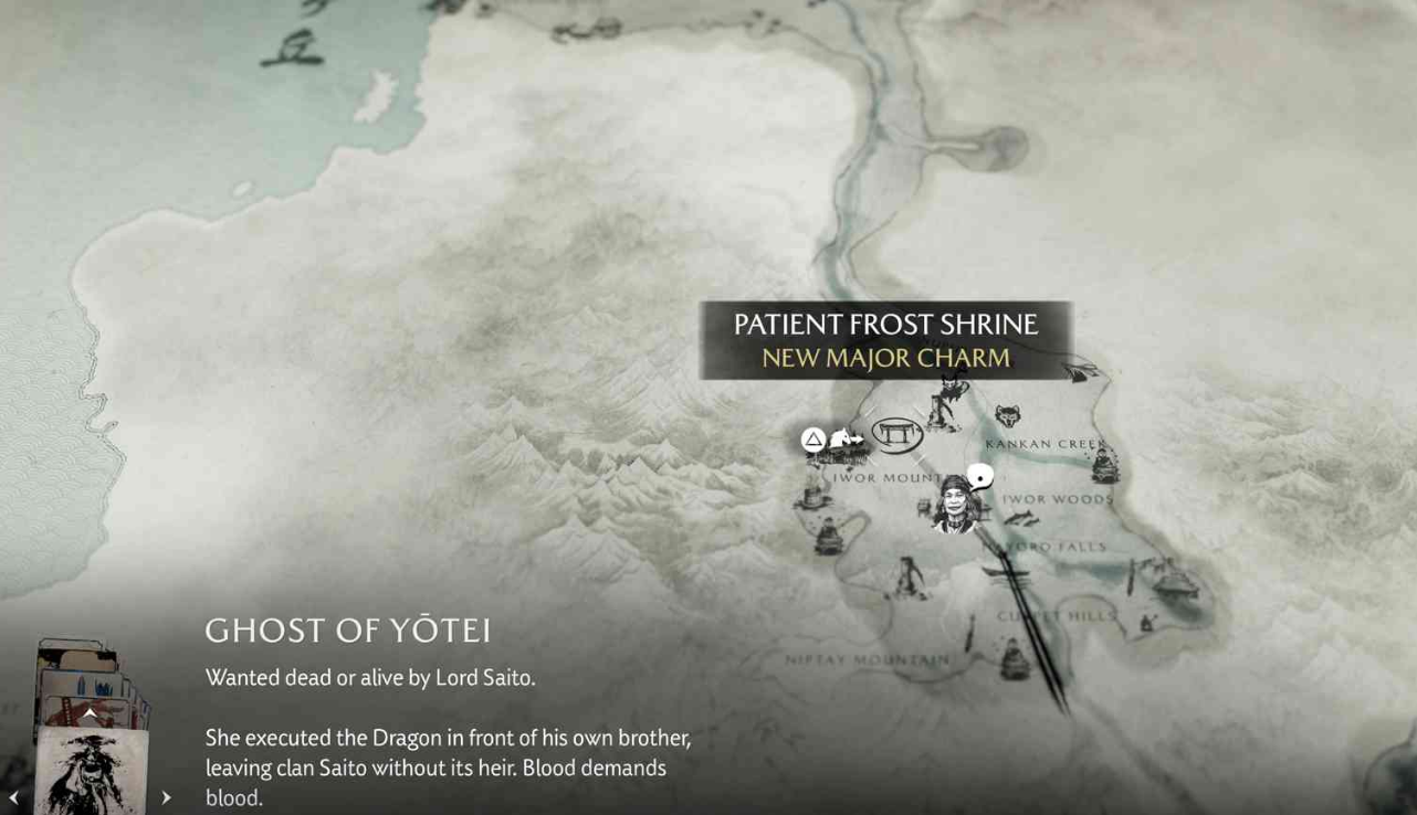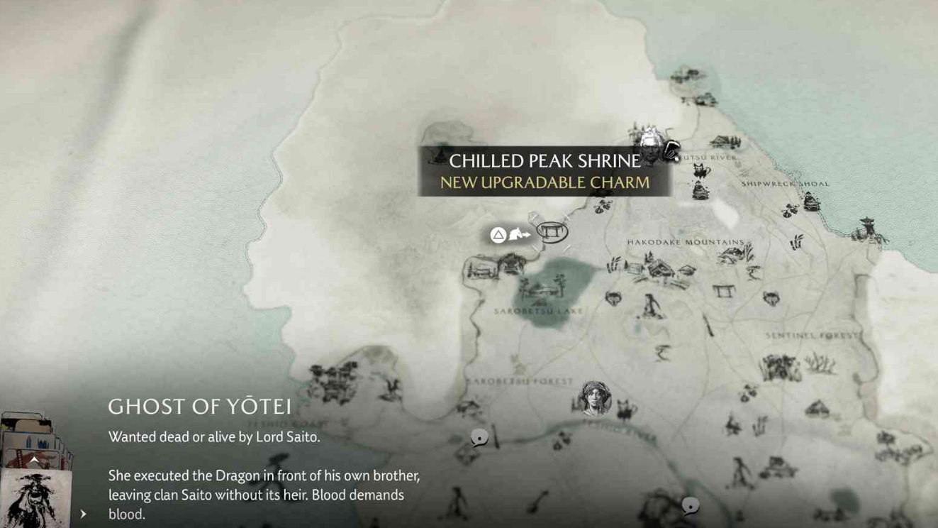 | Chilled Peak Shrine | Teshio Ridge | High icy peak, sharp jumps | Charm of Sukunahikona |