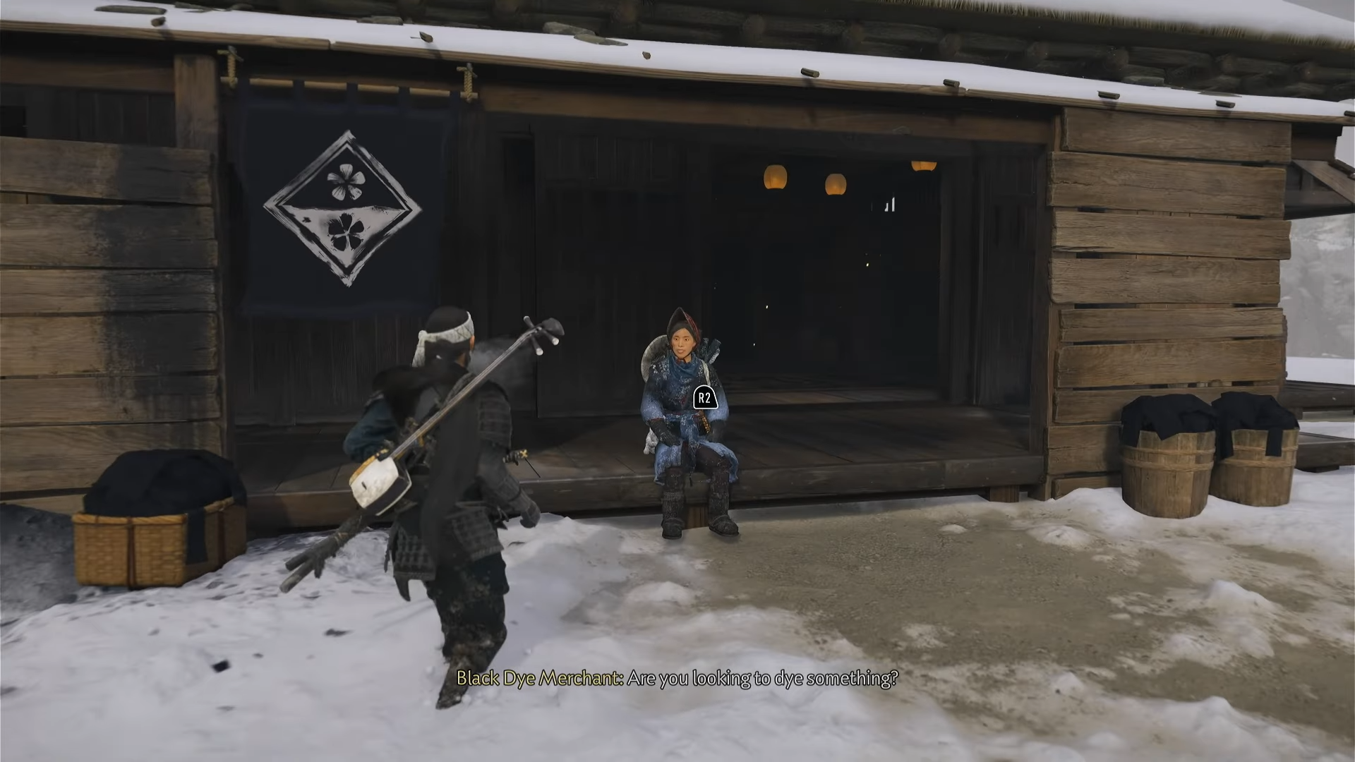 Discovering the Black Dye Merchant represents only the first step in accessing their armor dyeing services. The merchant's services unlock only after progressing through "The Kitsune" questline, which forms part of the broader Yotei Six revenge arc.