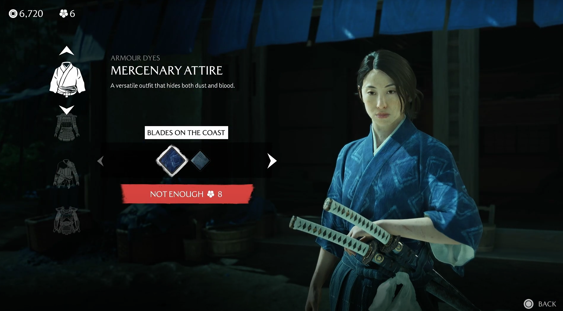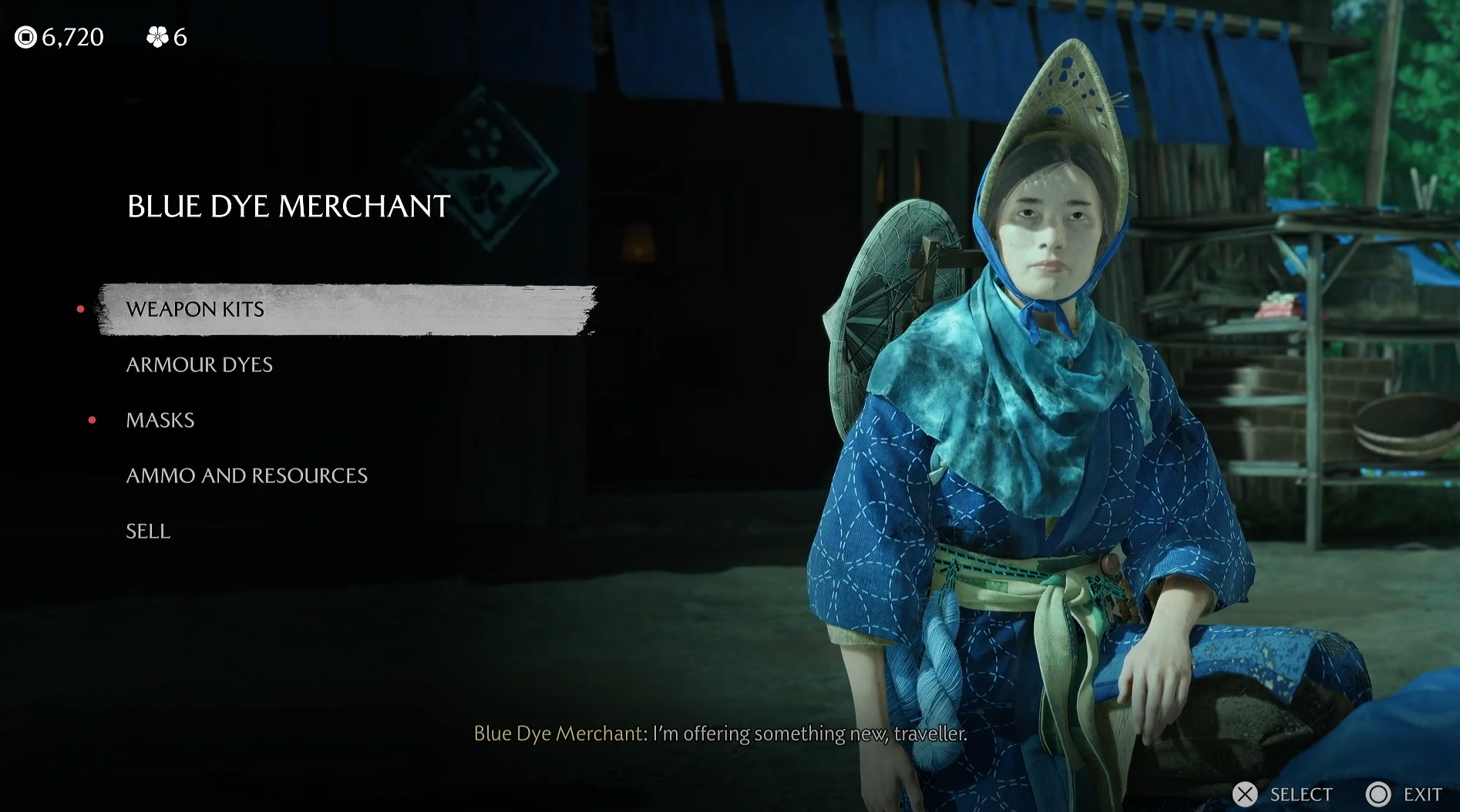 Customizing with the Ghost of Yotei Blue Dye Merchant