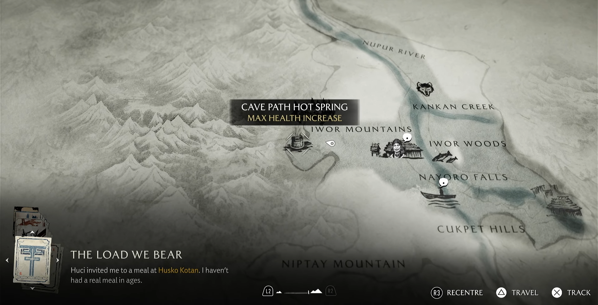 In Ghost of Yotei, the Cave Path hot spring is situated in the northern half of the Nayoro Wilds, specifically along the western border in the Iwor Mountains. The starting point for the climb is just south of the marker labeled “Iwor” on the in-game map. Here's a step-by-step guide to reaching it.