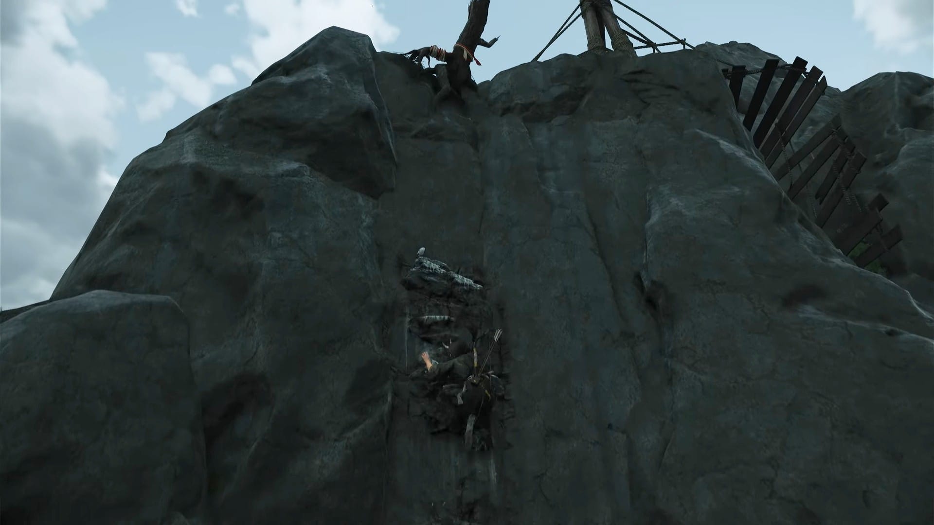 Approach the cliff’s base on the rock’s south side. Look for handholds and ledges at the very bottom that form the climbing path.