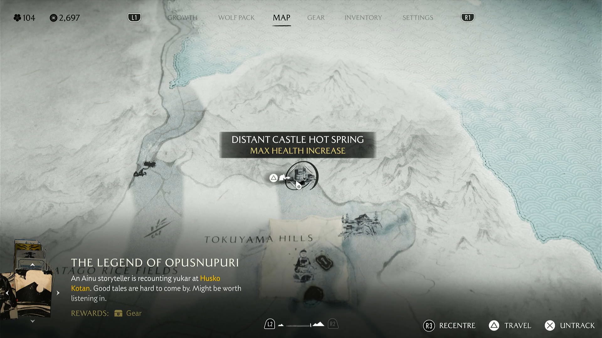 The Distant Castle Hot Spring sits at the far northern boundary of Oshima Coast, tucked into a hillside just above Tamura Estate. It only appears on your map once you reach Chapter 2 and gain permission to traverse into Oshima Coast’s bright-pink cherry blossom forests. Before you set out, ensure you have: