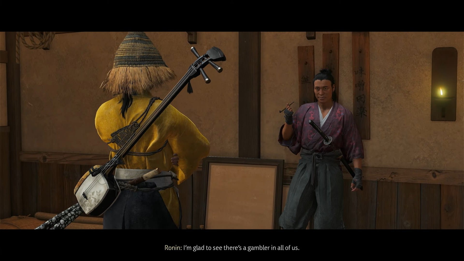 When entering a gambling den in Ghost of Yotei, you’ll take part in lively rounds of the Zeni Hajiki gambling mini-game while surrounded by other gamblers, with a constant buzz of conversations and wagers filling the air.