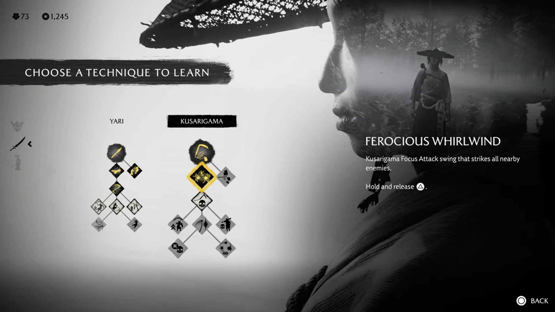 As you unlock new weapons such as the katana, odachi, kusarigama, spear, and tanegashima through your journey and training with different masters, progression happens by visiting Altars of Reflection and choosing skills from specialized technique trees for each weapon.