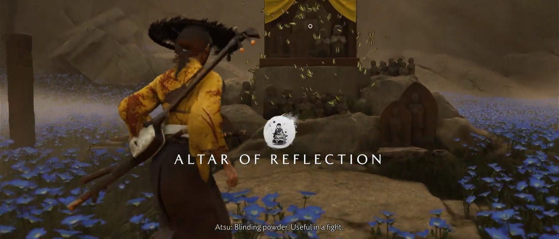 - Engage and defeat him. After the fight, reach to the Altar of Reflection, you will receive Metsubushi (Quickfire weapon) as the reward.