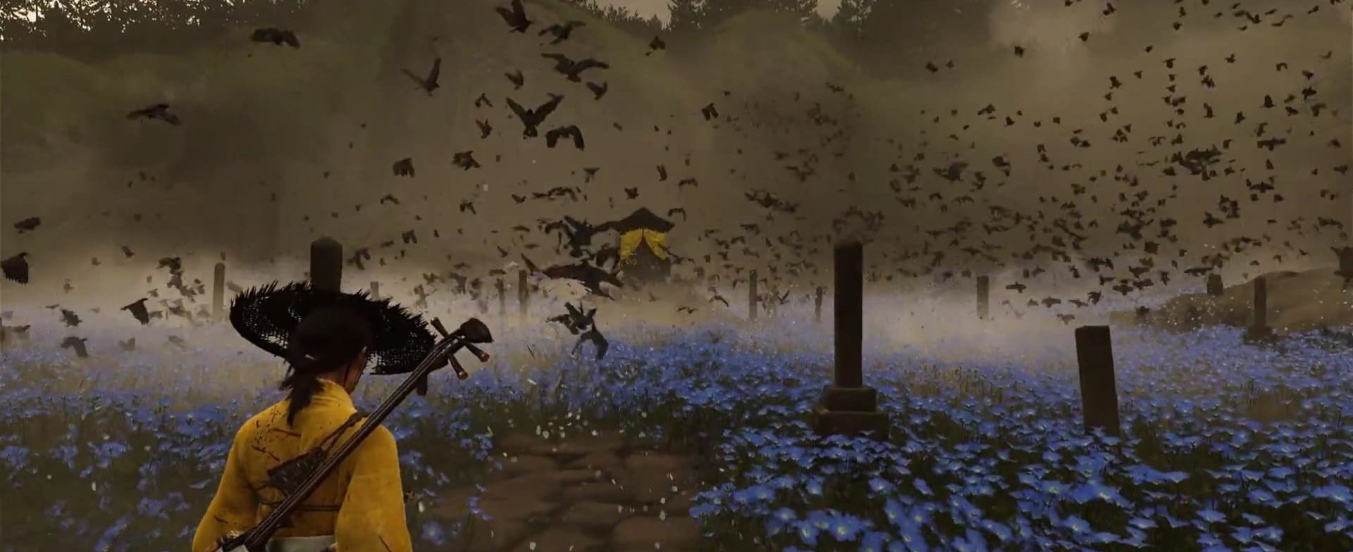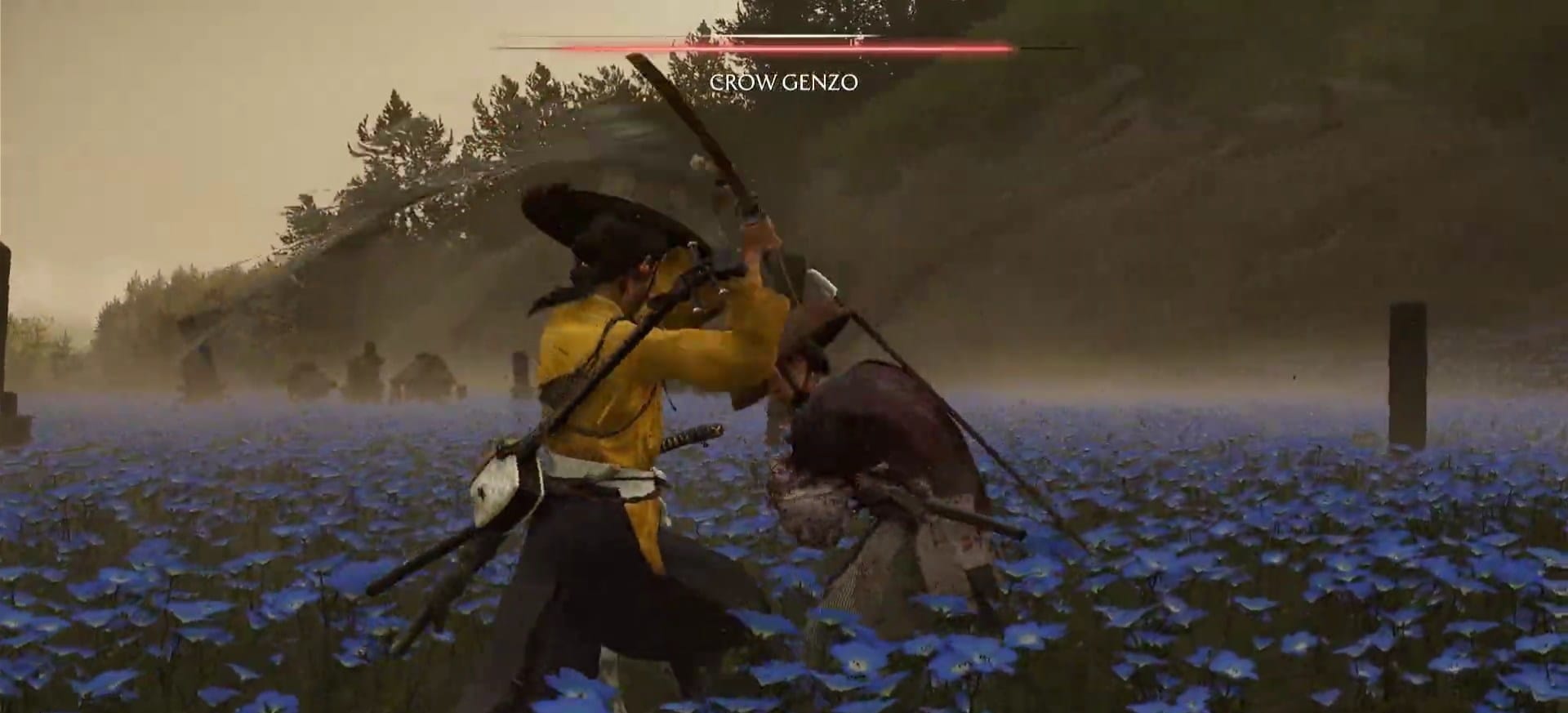 | Blue-Flowered Cemetery — boss arena | Find and defeat Crow Genzo in the encounter. | Use dodges/parries; challenging fight for underleveled builds. |