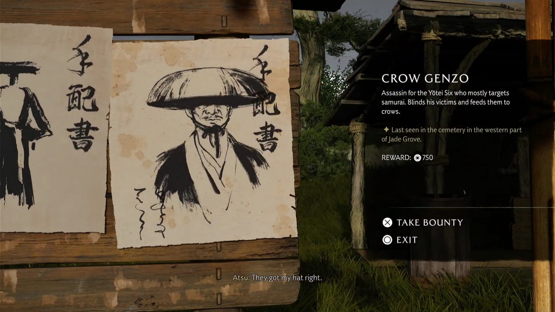| Yotei Grasslands — Bounty Board | Pick up the Crow Genzo bounty from the local Bounty Board. | You must have access to Yotei Grasslands. |