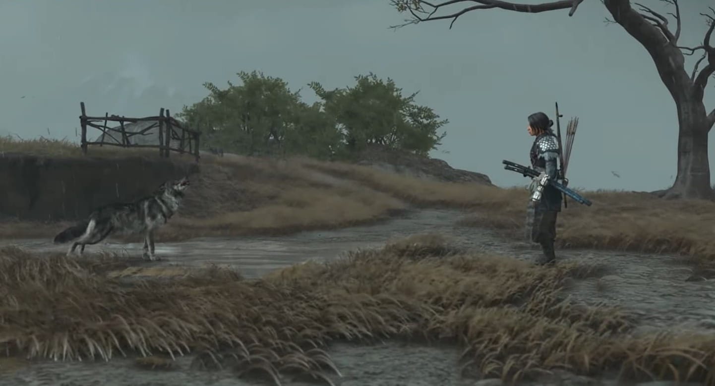 Once the enemies are cleared, interact with the wolf den to trigger your wolf companion’s appearance.