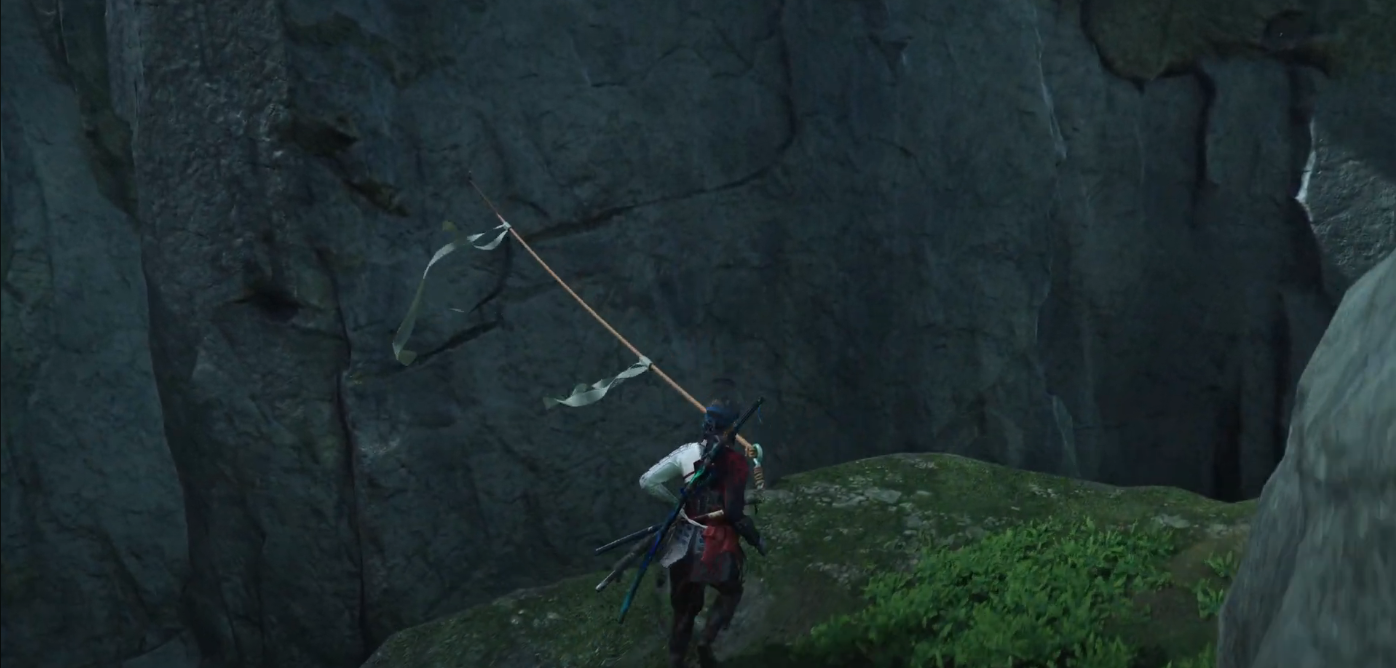Follow the path upward, utilizing the bamboo poles and ropes provided to carefully scale the cliff. Keep an eye out for handholds and secure footholds as this part demands precision.