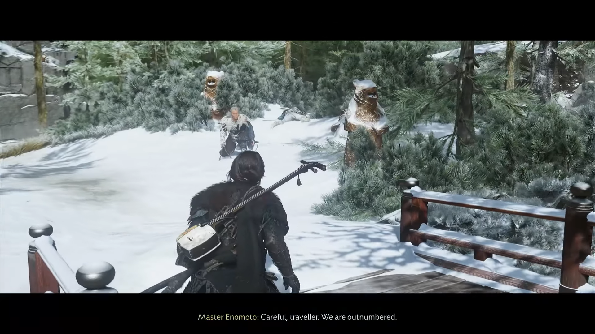 Look for a bridge or narrow path where Master Enomoto will appear — crossing certain thresholds triggers the sensei tale opening scene. Move slowly if you want to keep stealth options available.