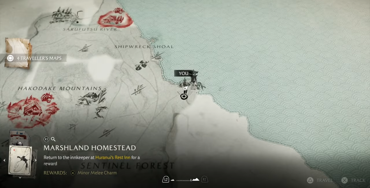 Sarufutsu Lighthouse lies on a narrow peninsula at the eastern edge of the playable map. Although its name might suggest proximity to Sarufutsu River, it’s actually located several meters southeast of Shipwreck Shoal, overlooking the greyed-out unreachable territory.