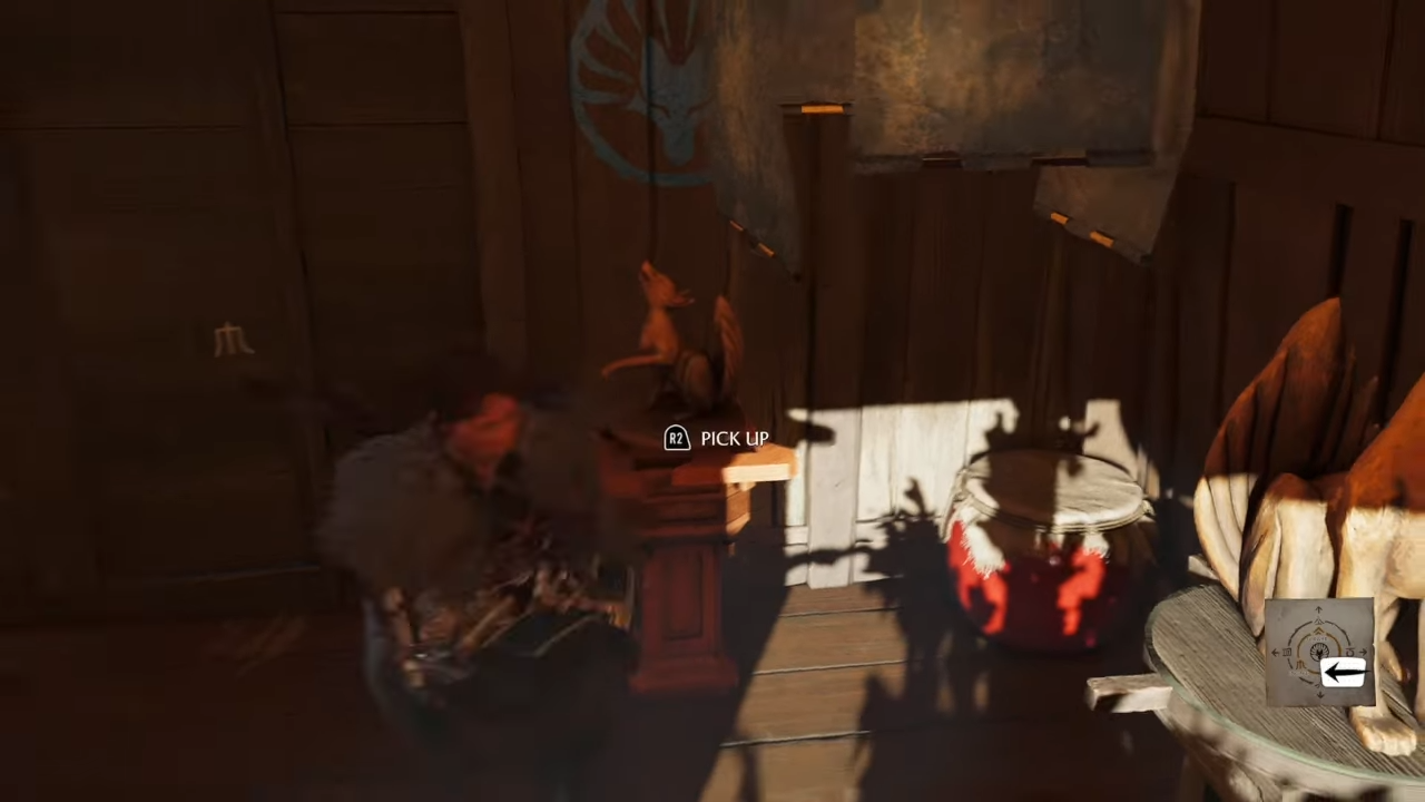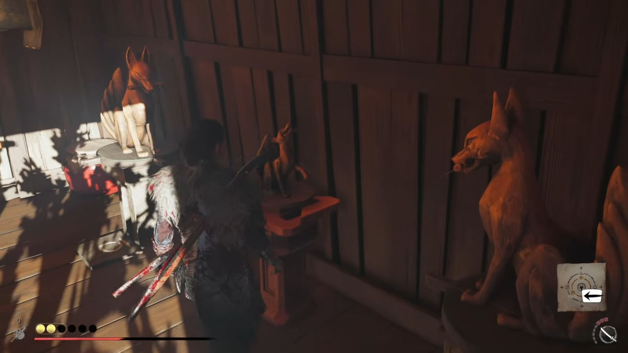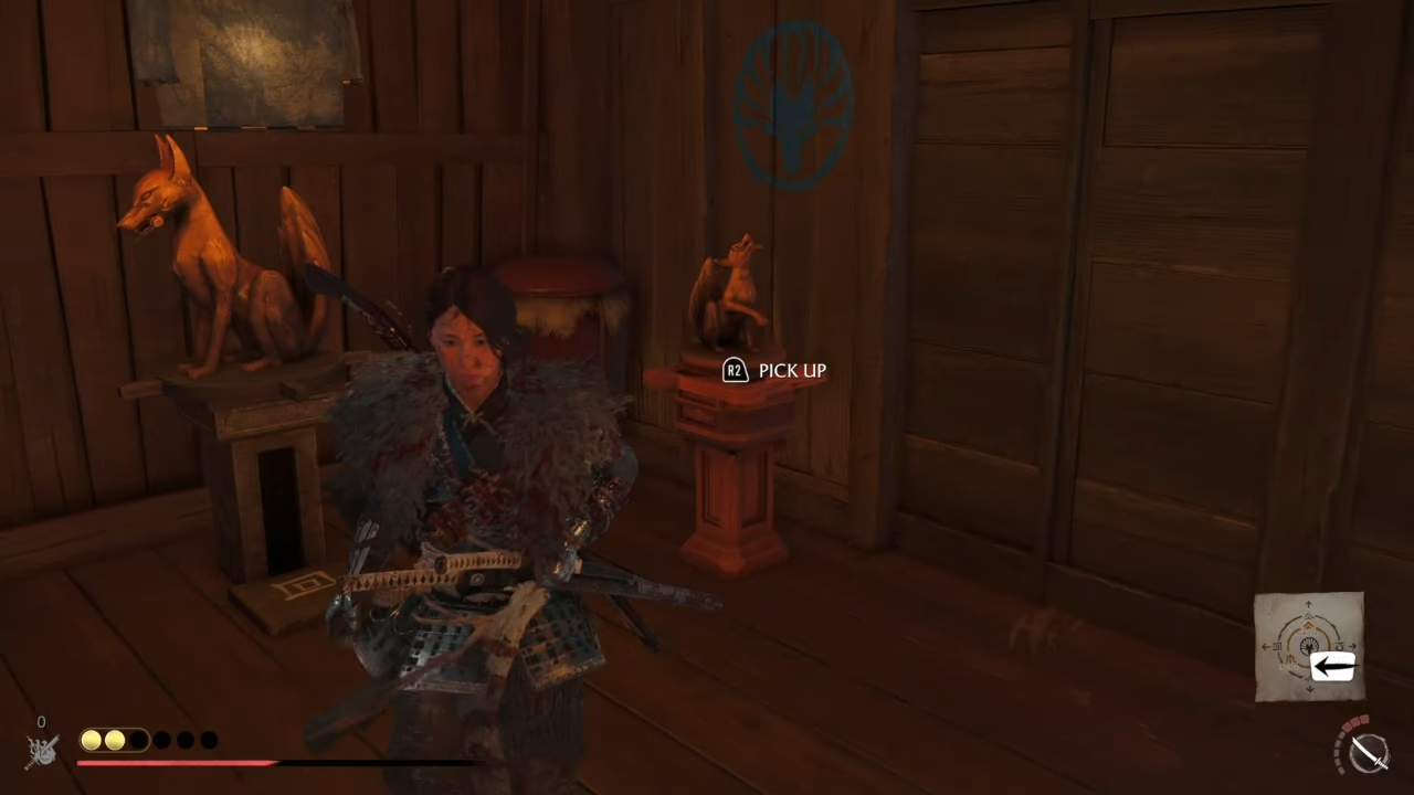 Pick up the small fox idol and place it on the left pedestal by the door.