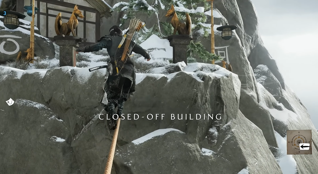 - To access the building, players must solve a fox statue puzzle involving making two pairs of fox statues face each other or face away from each other.
