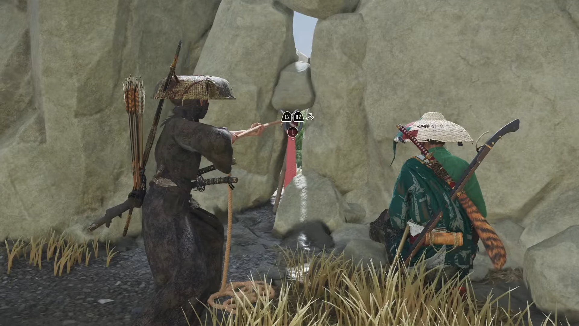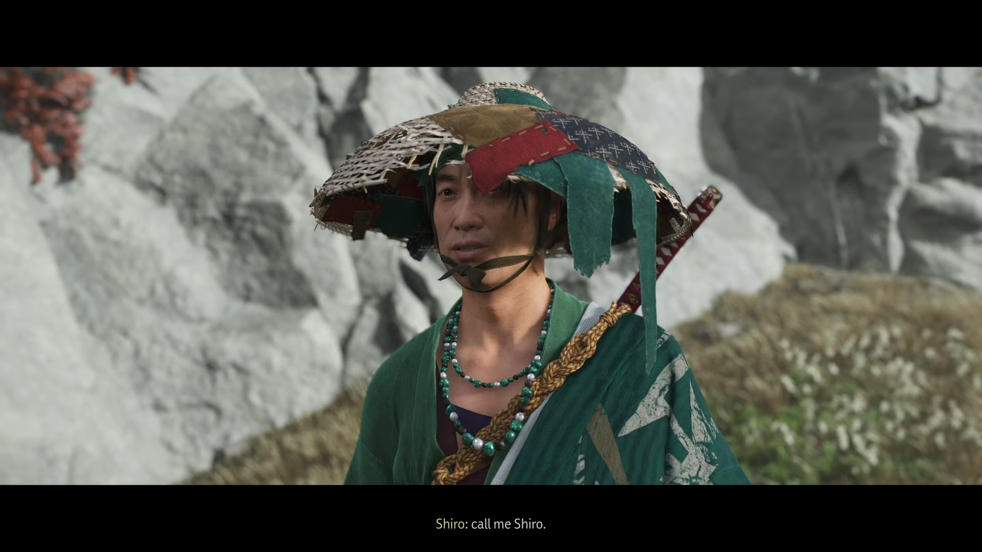 Interacting with them triggers a short cutscene. Here, Shiro appears, saving you from an ambush.