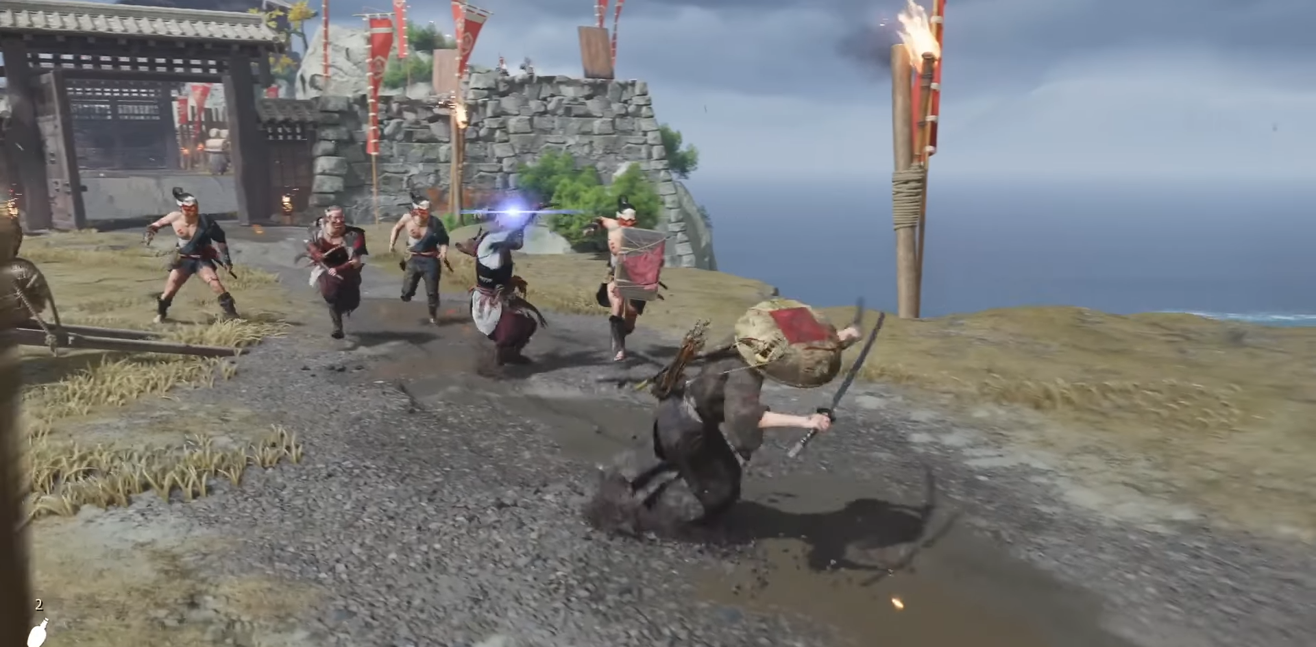 Sneak forward to silently eliminate the first few guards. The area is patrolled by musketeers and ronin archers.
