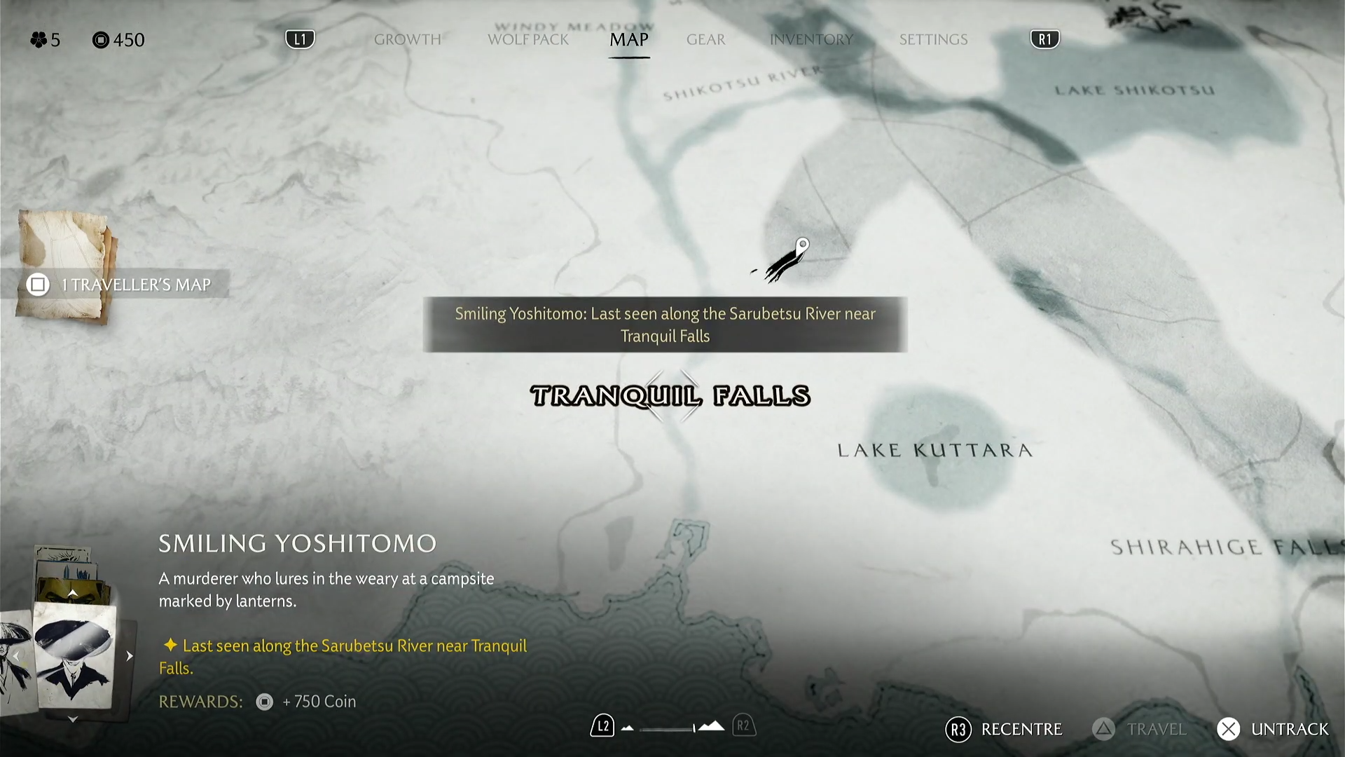 The bounty becomes available at the Bounty Board in the Yōtei Shadow Inn, also called the Old Inn, located in the Yōtei Grasslands. Accepting it adds a map marker showing the general area of the target’s last known location.
