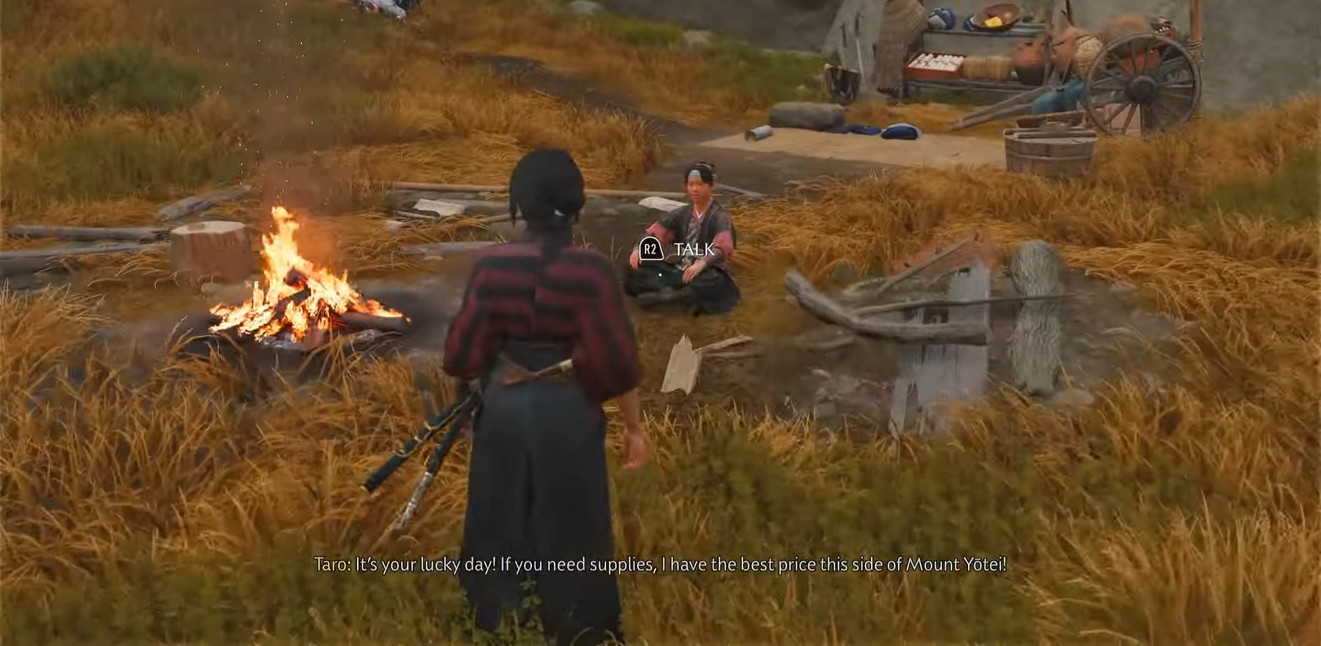 Taro’s merchant inventory updates as you progress through the game, making revisiting him useful even late into the campaign.