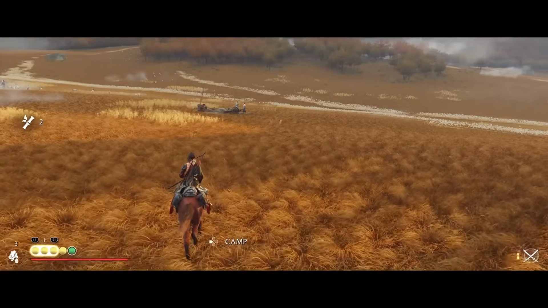 Explore the Yotei Grasslands, especially areas southwest of Lake Shikotsu or near the Shizunai Woods, watching for event markers.