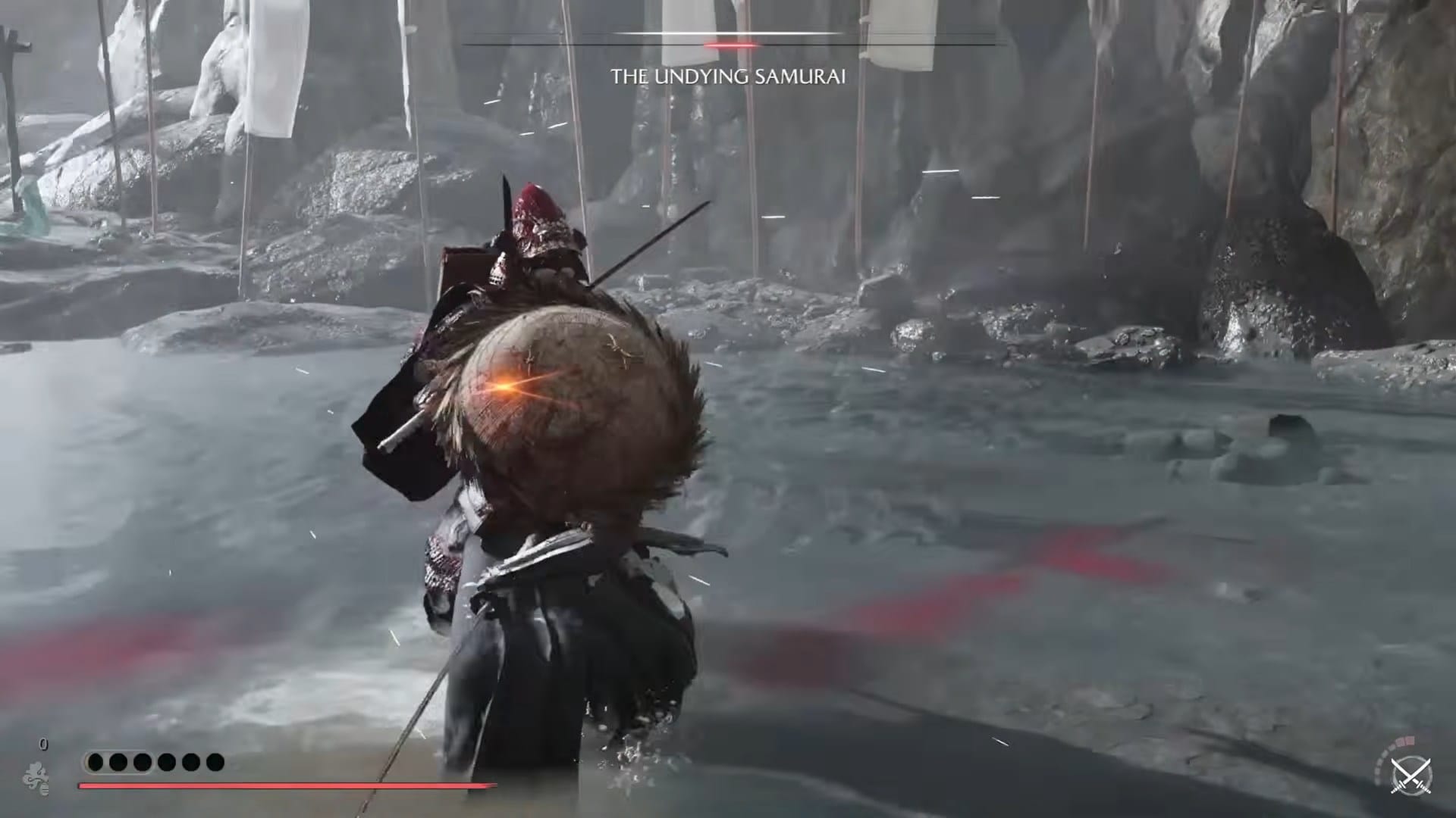 After the cutscene, the boss fight begins. Be ready to parry and dodge his katana strikes (and any flaming aura it might gain). When you successfully stagger his posture, go in with heavy combos or charged attacks.