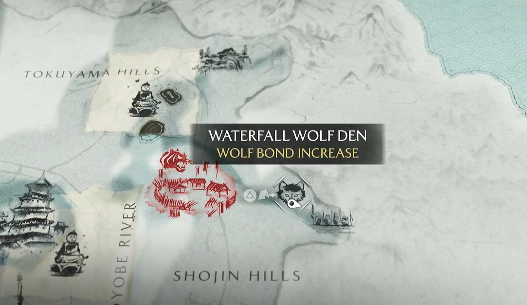 The Waterfall Wolf Den is located in the Oshima Coast region of Ghost of Yotei. Specifically, it is found at the far eastern edge of the map, just past the Saito Artillery Outpost. Look for a large waterfall with a distinctive tree atop a rock and several bodies nearby—this marks the entrance to the den. You can climb up either side of the waterfall to reach the den at the top.