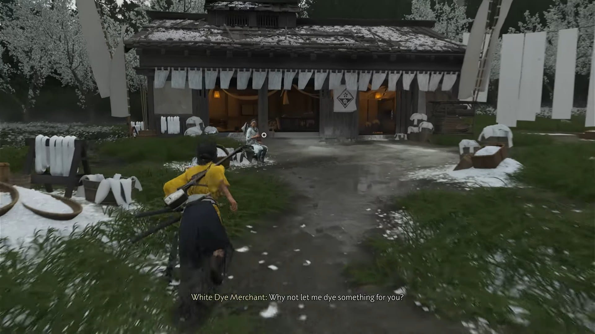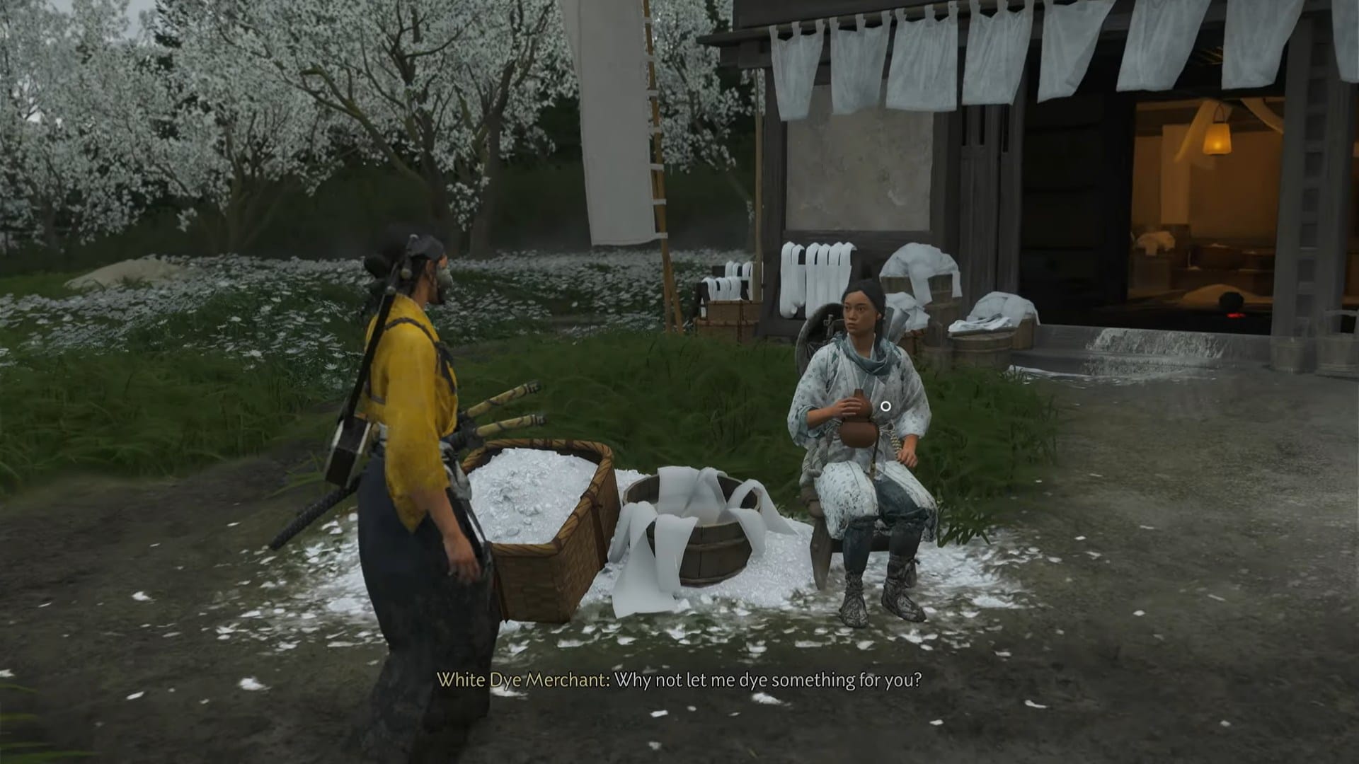 Complete the entire quest to activate the White Dye Merchant’s availability in the world. Before this point, the area near the Yotei River might appear empty.