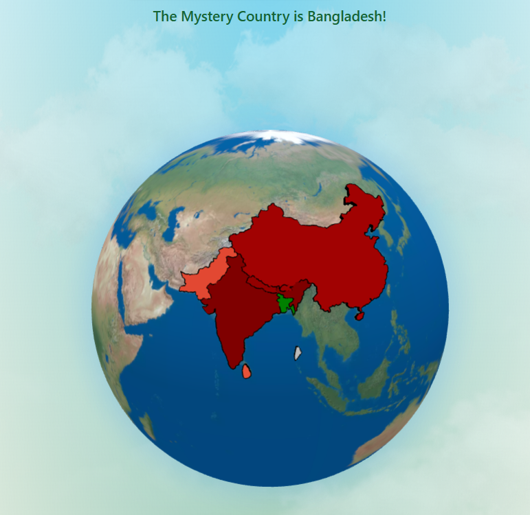 Bangladesh was today’s answer, and its coastal placement plus proximity to several heavily guessed countries made it a challenging pick. Many players were misled by warm-color guesses in the surrounding region, especially given the dense cluster of South Asian nations. Its unique delta geography often throws off distance-based clues, adding to today’s difficulty.