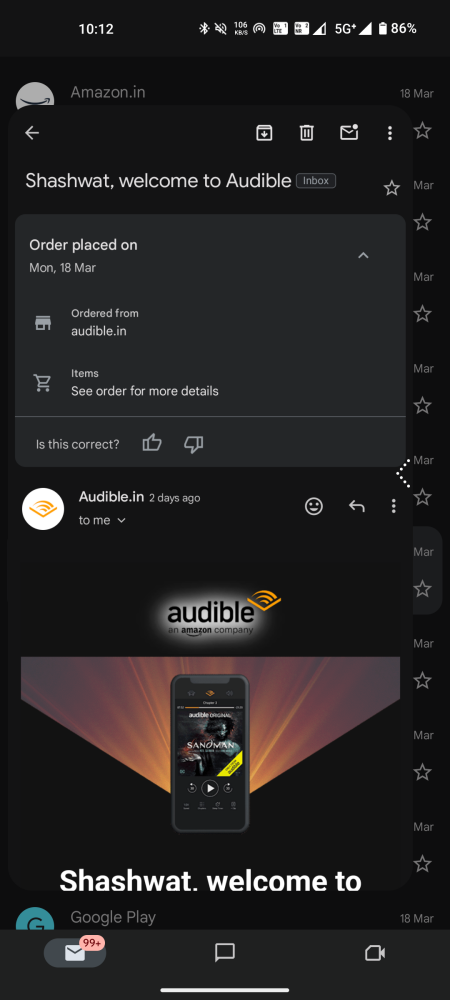 When you close an email on Gmail, you’ll see the predictive back gesture in action. As you swipe back, the email will shrink in size as though it’s decoupled from the main app screen and you will see the transition animation showing where you’re swiping back to.