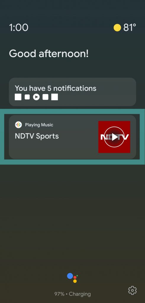 Behaving just like a lock screen on an Android phone, the Ambient mode also displays music playback on its default home screen. You can ask the always-active Assistant to play content from any app without needing to touch the phone. You can access music from Spotify, Play Music or any app that’s installed and also ask the Assistant to play you the current news or a podcast. As shown in the screenshot above, the Ambient mode displays a widget-like section of the content being played on its home screen.