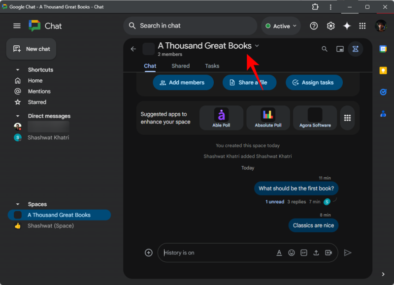Step 1: Open the Google Chat app and open the space whose notifications you want to change.