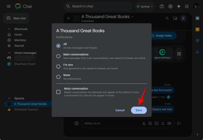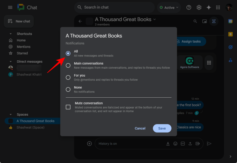 Step-by-step guide to enable notifications for all messages in Google Chat Spaces