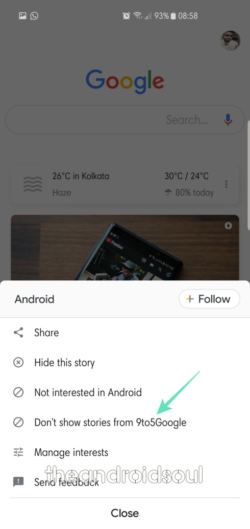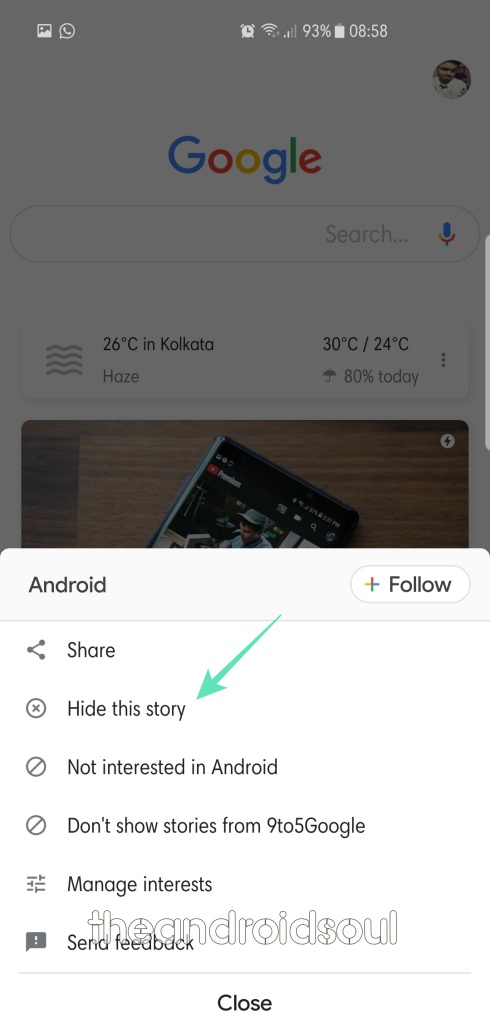Google Discover doesn’t only show you stories from the topic you specifically subscribed to, but it also shows you stories/topics based on your search trend. Not all of them might seem relevant to you, so, Discover gives you the option of stop seeing stories from a specific topic.
