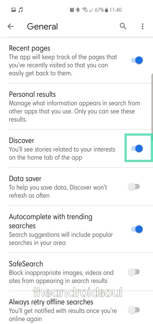 Step 5: Toggle off Google Discover.