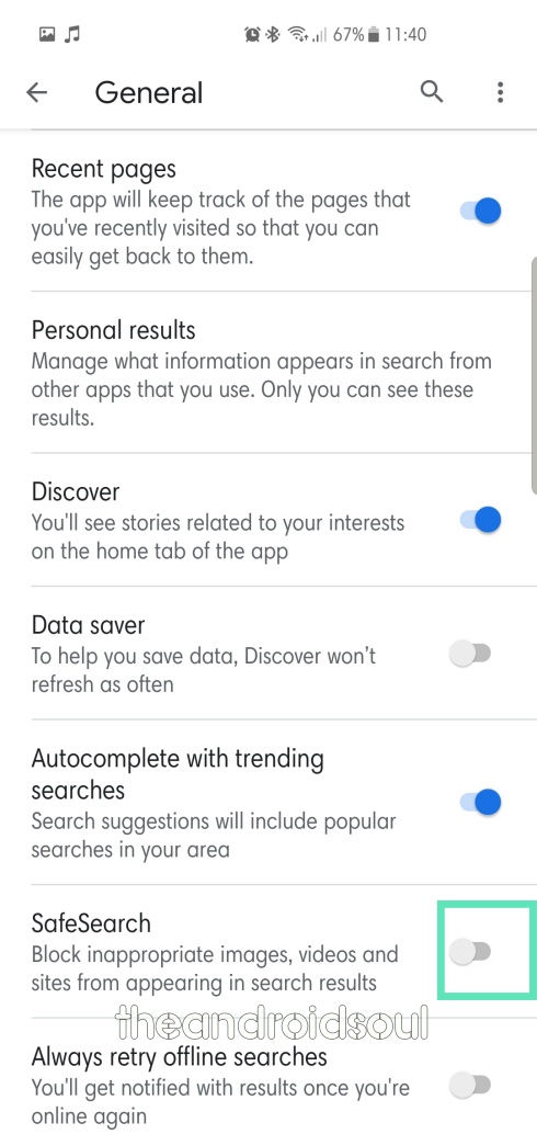 Step 5: Toggle on SafeSearch.