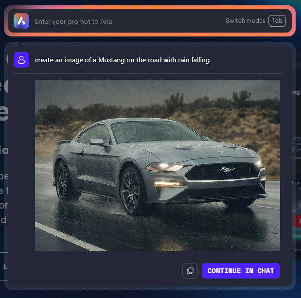 Cltr+/shortcut to start a conversation, you will not see the option to read aloud the response. - You can, however, use the “Ask Aria” button to access the new image generation model. Simply type your image generation prompt and let Aria do its business.