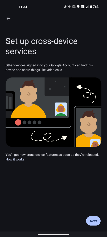 Device location and Bluetooth is required for the features to function. Enable these two features on phones and tablets running Android 11 (and above) by going to Settings > Google > Devices & sharing > Cross-device services.