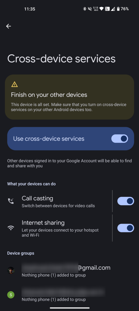 • Set these up from Settings > Google > Devices & sharing > Cross-device services.