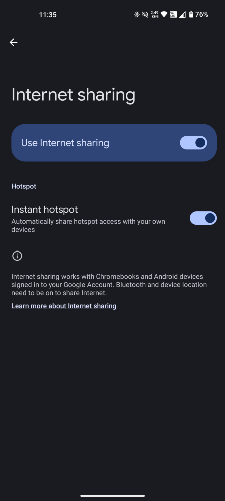 On the other hand, Internet sharing does exactly what it says, that is share internet via hotspot with your other devices. Again, you’ll need to have the same Google Account on the two devices.