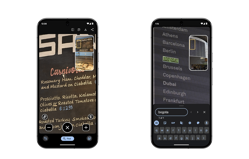 - New additions include text search, lens selection, and PiP mode.