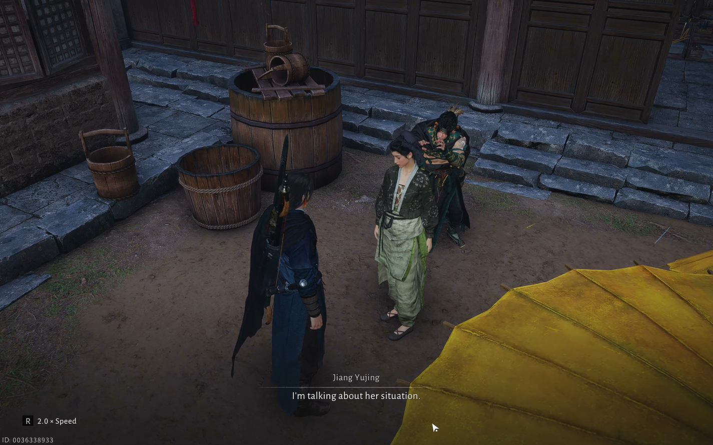 Talk to him—he explains that a broken umbrella belonging to Jiang Yujin a member of Velvet Shade, has gone missing, and he fears her wrath.